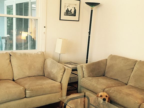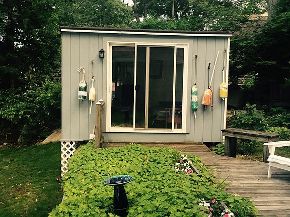 Our 3-br home on one half acre of land is available September 9, 2017 for 9 months. No short-term rentals, please. We're located on a private road that ends two houses past our house--so it's very quiet. We have a front and back yard. The house is 50 feet from a tidal bay. The LR and MBR have floor-to-cathedral-ceiling glass sliders facing the water. The LR opens onto a deck for dining and relaxing. The MBR opens onto a terrace. In addition to the mbr, there are two other bedrooms. There are two bathrooms and an outdoor shower. The house has 1,063 square feet. We have a dock that's suitable for mooring a boat. In addition, there's an adjoining studio, also facing the water, excellent for use as a study or office. However, it isn't heated, so it's not suitable for use in winter. We're 10 minutes drive from the center of Gloucester and less than one hour drive to Boston. We require a nine-month lease as specified in the dates available. We don't rent the house for short-term rentals at this point. Beginning this fall, we plan to list for short term rentals of one week or longer for the summer 2018. Further, tenant pays utilities for the nine-month rental: lawn maintenance, water and sewer, personal property insurance, heating oil, electricity, Internet, telephone, and cable TV. Owner pays real estate taxes and fire insurance.