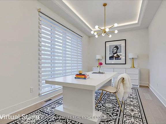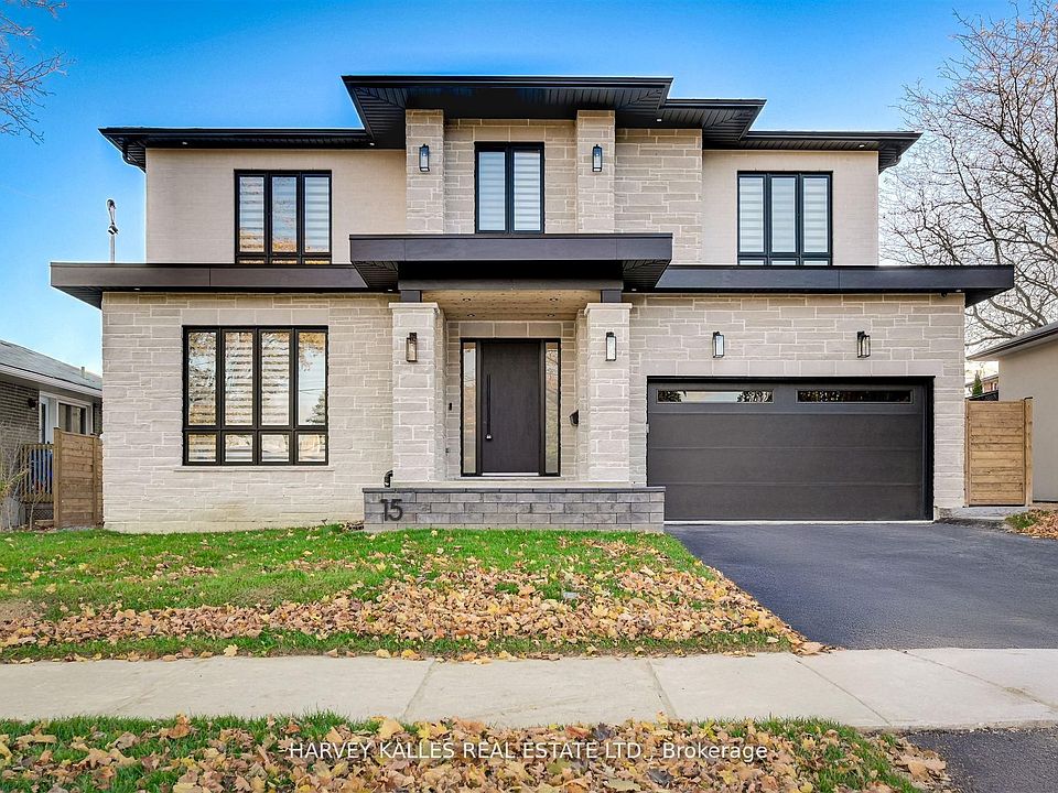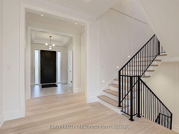 Where Sophistication Meets Sanctuary in Westmount / Chapman Valley. Step into this masterfully crafted custom home offering over 5,100 sq ft of refined elegance. With 4+1 bedrooms, 6 designer bathrooms, and 10-foot ceilings on the main floor, every detail has been curated for upscale living. A chef's dream kitchen dazzles with a 48 Thermador gas range, built-in appliances, coffee bar, prep kitchen, and dual dishwashers, all wrapped in quartz counters and dramatic custom cabinetry. Bask in natural light from floor-to-ceiling south-facing windows, enhanced by remote blinds and a showstopping 6-ft linear fireplace. Wide plank hardwood, statement lighting, and sophisticated moulding create a flow that's equal parts glamour and warmth. The primary retreat offers his & hers walk-ins and a spa-worthy ensuite with heated floors, soaker tub, oversized glass shower, and private water closet. Additional bedrooms feature ensuite or semi-ensuite access, all finished with timeless materials. Downstairs, a bright 9-ft ceiling lower level offers a grand rec space, private guest suite, and sleek powder room ideal for entertaining or extended family. From its striking 2nd level staircase skylight to its double garage with EV rough-in, this home defines next-level luxury just steps from ravines, trails, schools, and the best Etobicoke has to offer.