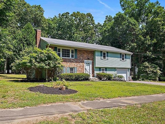 Welcome home to this delightful split-entry residence nestled in charming Holliston. As you enter, you'll be greeted by a bright foyer with easy access to both the upper and lower levels. The main level features an open-concept living and dining area with large windows and skylights that allow for plenty of natural light. Enjoy hardwood floors and a minisplit for AC, which create an inviting atmosphere perfect for everyday living. The lower level family room boasts a warm welcoming ambiance with a brick fireplace and built-in bookshelves, making it an ideal space for relaxation. Downstairs you'll also discover a bathroom, storage space, and a bonus room that could be used as a fourth bedroom or home office. The beautifully landscaped backyard is a private haven, complete with a spacious deck for outdoor dining, a lush lawn for play, and mature trees that offer both shade and privacy. The large lot provides endless possibilities for gardening, recreation, and outdoor enjoyment.