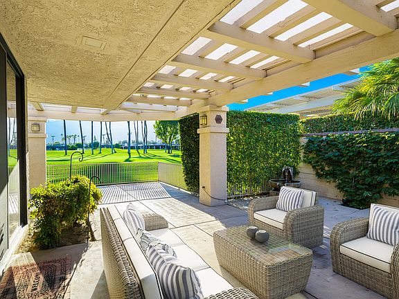 Experience luxury living at its finest in this elegant 3-bedroom, 3-bathroom home, perfectly situated on the prestigious third fairway of The Springs Country Club. This meticulously maintained property offers expansive breathtaking golf course views, combining sophistication and comfort for both relaxation and entertaining. The open-concept layout creates a seamless flow between the living, dining, and outdoor spaces, blending charm and functionality throughout. The inviting kitchen is equipped with modern appliances, ample counter space, and custom cabinetry, making it an ideal setting for entertaining guests or enjoying quiet meals at home. Each bedroom provides a cozy retreat, including two guest bedrooms, each with its own en suite bathroom for enhanced privacy and convenience. The primary suite stands out with a spa-like bathroom and direct access to the tranquil outdoor patio, offering the perfect sanctuary for relaxation. Enjoy the advantages of leased solar panels, which help reduce energy costs and support eco-friendly living without compromising comfort. Residents of The Springs Country Club have access to a wide array of exceptional amenities, including a brand-new redesigned championship golf course, new tennis & pickleball courts, a state-of-the-art fitness center, and a clubhouse featuring fine dining experiences. Whether taking in the panoramic views or immersing yourself in the vibrant community lifestyle, this home offers a unique opportunity to enjoy one of Rancho Mirage's most sought-after locations. Don't miss your chance to own this exquisite property and experience the best of desert living.