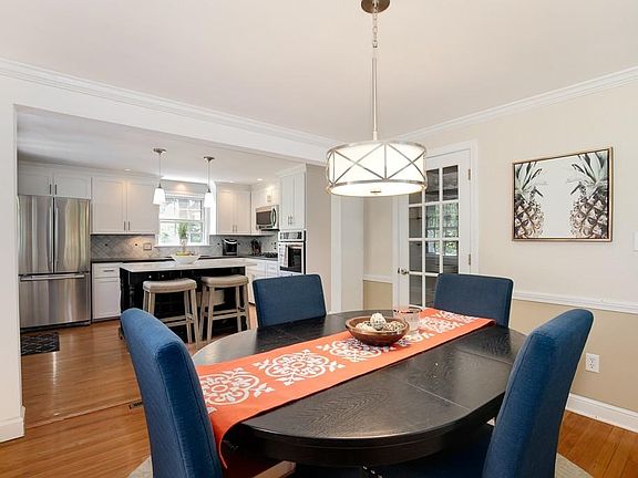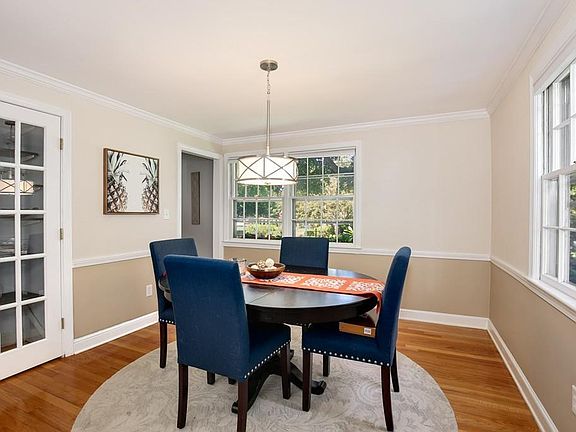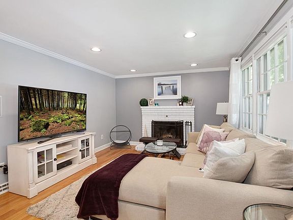 Beautifully maintained Cape in a quiet closed loop neighborhood! As you enter this charming home you are greeted by gleaming hardwood floors throughout and a comfortable living room accented by an attractive fireplace and built-in Samsung surround sound speakers. Flow nicely into the formal dining room that is completely open to the stunning newly remodeled kitchen featuring SS appliances, sleek white cabinetry, and an island/breakfast bar. A bedroom and an updated full bath complete the main level.Hardwood floors continue upstairs to the bright generously sized master bedroom with dual closets. Across the hall is another roomy bedroom with dual closets and an adjacent updated full bath. Newly carpeted stairs lead to the finished lower level with a family room and bonus room currently used as a gym. Enjoy outdoor living on the back deck overlooking the fenced yard and serene surrounding nature. New driveway and walkway.Conveniently located close to major highways, shopping,and schools.