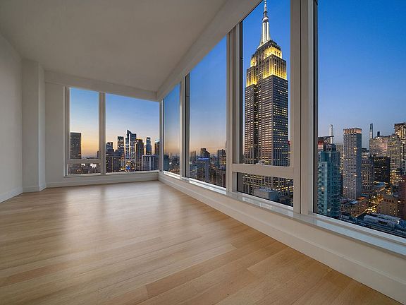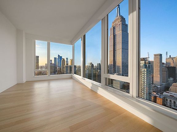 As one of the most sought out layouts in the building, upon entering the living room you are greeted by a captivating view of the Empire State Building, which is especially mesmerizing after dark. The open layout seamlessly connects the living and dining areas to the well-appointed kitchen, creating an ideal space for entertaining or unwinding after a bustling day in the city.