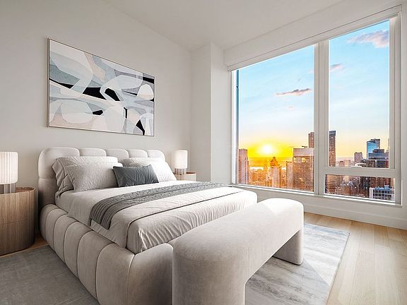 Step into luxury living at Madison House, where sophistication and elegance meet modern design. This one-bedroom, one-bath residence welcomes you with its open living and dining area, surrounded by 14.5-foot ceilings and soaring 10-foot tall windows that offer breathtaking views of the North and West cityscapes and Hudson River.