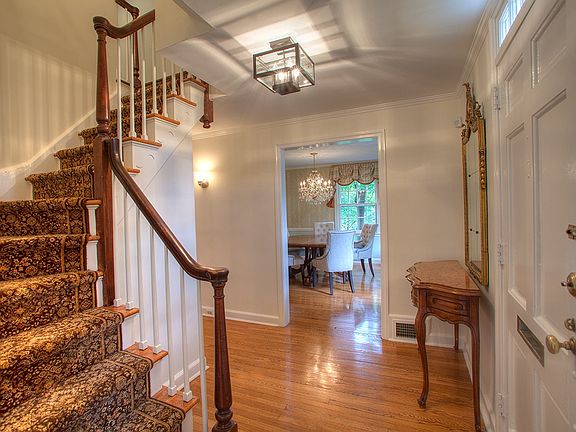 Nestled in an enclave of prominent historic and newly built custom homes, the savvy homebuyer will see the rare find in the polished gem that is this lovely turnkey Colonial home. Refined architectural detailing can be found throughout the home, from its fluted front door trims and dentil roof moldings outside to the plentiful custom built-ins and fine finishes that define its well-appointed rooms. Rich refinished hardwood floors flow throughout the home, beginning in an entry foyer that introduces a bright, inviting fireside living room with traditional fireplace mantel, built-ins and oversized windows. French doors open to a first-floor home office with built-in desk, library shelving and French doors that open to a totally private bluestone patio and level lawn framed with mature shade trees and privacy plantings. The formal dining room elegantly displays a corner custom china cabinet and chair rail, with property views on two sides. A charming powder room with wainscoting is located off the hallway. An open concept family room, kitchen and breakfast area lies at the heart of the home, perfectly designed for today's comfortable lifestyle in mind. The chef's kitchen features soft white paneled cabinetry set against black honed granite countertops and professional-grade stainless steel appliances that include two ovens, along with a center island with seating, A brick fireplace in the family room and breakfast area adds warmth and cachet to this wonderful living space. A nearby mud room with built-in cubbies leads to the parking court for easy access into the home. Built-in speakers in the living room and family room are enhancements to the home. The second floor is host to generously-sized, tastefully appointed bedrooms, each with hardwood floors and custom recessed drawers and built-in shelving. The master bedroom enjoys two sets of double closets with mirrored doors, a wall of recessed drawers and a custom walk-in shoe closet. An elegant hotel-style master bath is clad in white, set beneath a vaulted skylit ceiling, with pedestal sink, walk-In shower and recessed towel shelving, while a spacious "black and white" hall bath with Carrera marble sink, subway tile and tub shower serves two of the bedrooms. The lower level is finished with neutral wall-to-wall carpeting and comprises a media room wired for surround sound and a game/play room, enhanced with closets galore and large laundry room with cabinetry and countertop space. Set in the Deerfield Elementary School district in one of Short Hills' upscale neighborhoods on .47 lush acre, this fine residence offers expansion possibilities as well, if desired.