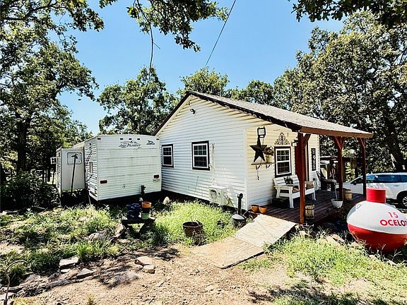 This adorable, well kept little cabin built within the last 4 years, has covered deck and covered parking. A 2008 Jaco RV is in place for extra bunking room, accessed from back deck. It is minutes from Nine Marina, ramp, recreation areas and sandy swim beach! The nearby cliffs are an attraction for the lake enthusiasts as well. Fishing, boating and local restaurants are convenient to this property in the Longtown area of Eufaula. Located along the road to Hidden Ridge, it is easy to access just a few miles off Hwy 9E and Piney Creek Road. A total of 6 lots and the RV transfer with the property. Property is sold As Is. Call to schedule to see this affordable lake retreat!
