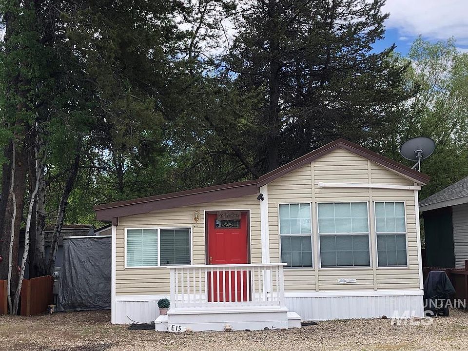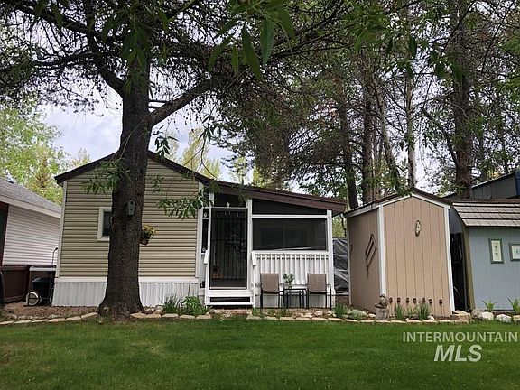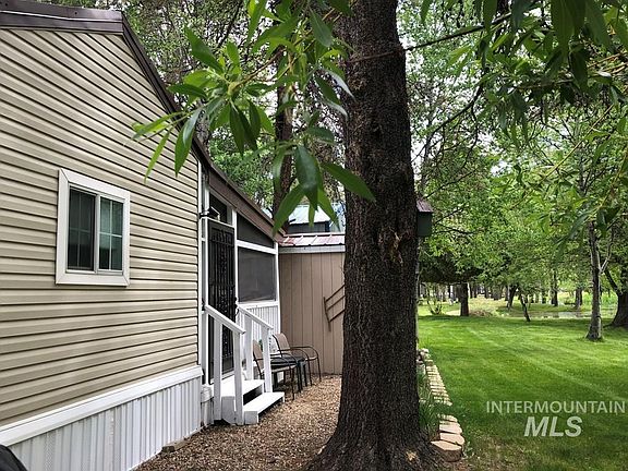 ON THE POND! Park model with addition, 2 bedroom/1 bath, 2 living rooms, screened in back porch, and well maintained. Roof is only 5 years old, new plumbing, heat pump offers heating and cooling, some furniture and other interior items included. Enjoy beautiful private back yard with views of the water. Shed and small pole barn cover for your RZR. Internet on and available. Great location in the park - E15. HOA fees cover water/sewer, garbage, road maintenance, clubhouse with laundry facilities and seasonal indoor swimming pool, and pavilion. Close access to Payette River, Lake Cascade, and Kelly Whitewater park. AWESOME RECREATION ACCESS!