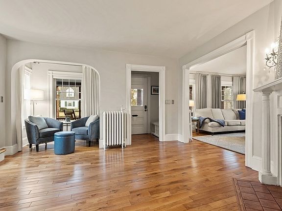 This home is the epitome of sophistication & beauty! A family home for generations, you feel the love & positive energy the moment you enter! The magnificent foyer w/decorative fireplace, beautiful millwork & conversation nook welcomes you. The kitchen is updated w/plenty of storage, granite countertops & stainless appliances! A modern day butler's pantry, laundry & powder room are conveniently located off the kitchen. The living room is warm & cozy; the perfect spot to unwind! The stunning dining room is perfect for hosting, a wood burning fireplace & window seat add the perfect touch of ambiance! The 2nd level is where you'll find the primary bedroom w/en-suite & walk in closet. Down the hall are 2 spacious bedrooms, large bath & flex space! The 3rd level offers a home office & media room. The large deck & front porch are the perfect spots to gather! Such an outstanding location, just 3/10's of a mile from the Boston/Providence train, close to schools & all of Sharon's offerings!
