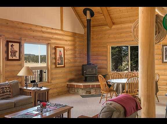 Perfect get a way for those wanting to be away from the crowds. Well built stucco and log home with a detached 24' X 36" garage with 16' door. Large gameroom/den with pool table and gas log fireplace. This is located across from section 48 hunting area. Large great room with a wall of windows to check out the wildlife and the sunrises! 625 sq ft of deck from which to enjoy the mountain air. Sold unfurnished, but some are negotiable. Aspen and pine trees together with meadow provide a great setting
