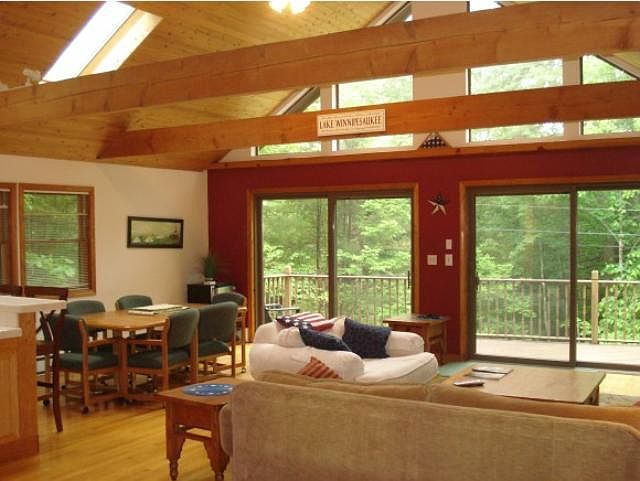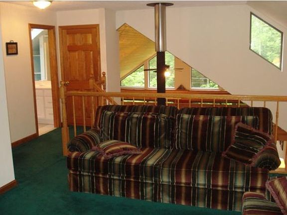Wonderful open concept contemporary in desirable water access community. This home has two levels of finished living space with hardwood floors, custom kitchen with breakfast bar, two car garage, vaulted ceilings, wood stove, a ton of room in the lower level for family room or future living space expansion. This ideal property is close to beautiful private sandy beach, boat launch and possible boat dock or slip access.
