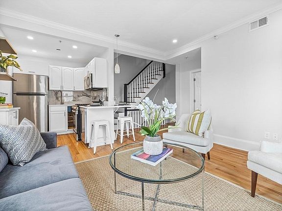 DELEADED with 2 PARKING SPACES! - Brand new, remodeled, updated 3 bedroom 2 bath apartment is nestled along one of Newton's beautiful tree lined streets. This sunny and bright apartment has a brand new kitchen, stainless steel appliances, gas cooking, stunning white cabinets and beautiful lighting. This wonderful open concept living space effortlessly merges the large living and dining areas for great entertaining and access to your own large private deck. There is plenty closet space, new wood floors through out and a large bedroom on the main level. The upper level includes two large bedrooms with extended windows to allow for plenty of natural light, a large brand new full bath and washer and dryer are included. One off-street parking space, second can be rented for $100 per month. Easy access to highway, express bus, whole Foods, Starbucks, and plenty of great restaurants. Rent includes heat, water, 2 parking spaces, snow removal, landscaping and refuse removal. Won't Last!