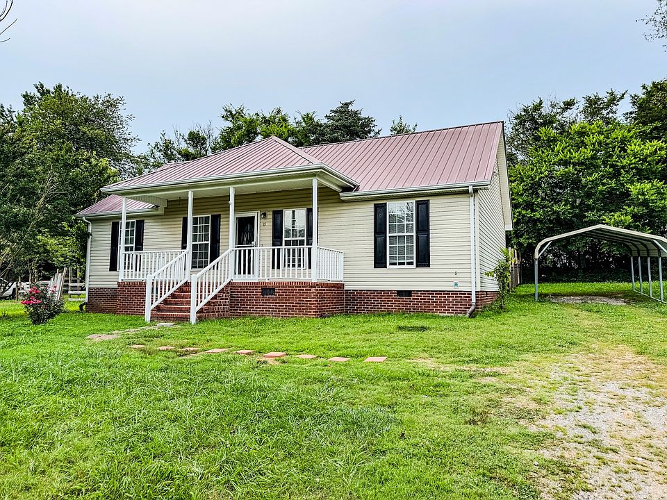Welcome to this inviting 3-bedroom, 2-bath home situated on a spacious lot with a private backyard—perfect for relaxing, entertaining, or simply enjoying the outdoors. Step inside to find an open-concept living room that offers a warm and welcoming space to gather. The layout flows effortlessly and provides plenty of room to spread out and make yourself at home with zoned bedrooms. Enjoy quiet mornings or peaceful evenings on the rocking chair front porch, or host summer cookouts on the back deck overlooking your private, tree-lined yard. Additional features include a portable carport for convenient covered parking and no HOA. Move-in ready with fresh paint throughout. 1% lender credit with preferred lender