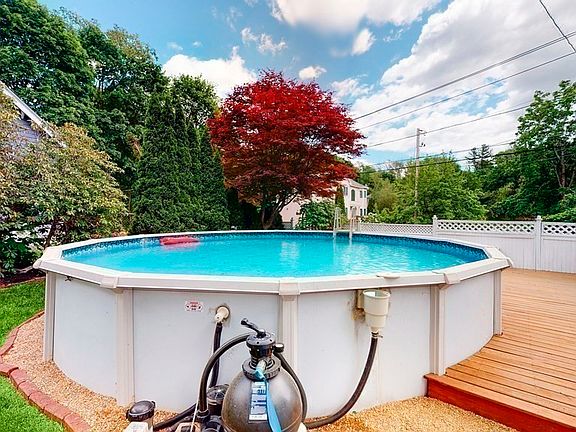 WANT GREAT SCHOOLS and NEED 4 BRS? Welcome to beautiful Enmore Street with dual sidewalks, granite curbs & street lights. This colonial revival has all 4 BRs on the 2nd floor with wood floors & an updated, full bath. On the 1st floor, the kitchen has solid wooden cabinetry and is well laid out with access to the back yard & 1/2 bath. A generously sized dining room & spacious living room features a VT cast iron wood burning stove that has provided a great heat source for the entire home during winter months. Off the living room is a den, office or study adding to the versatility of the floor plan. Attractive beamed ceilings, hardwood floors & wooden walls are featured - either paint or leave natural. A welcoming front porch & fenced in side yard with brick patio, garden area and inviting, above ground pool provide options for staycation fun. Fantastic location - handy to downtown, train, bus & highways (Rt 495 & Rt 93), shopping & restaurants. Great value in Andover. Won't last long!