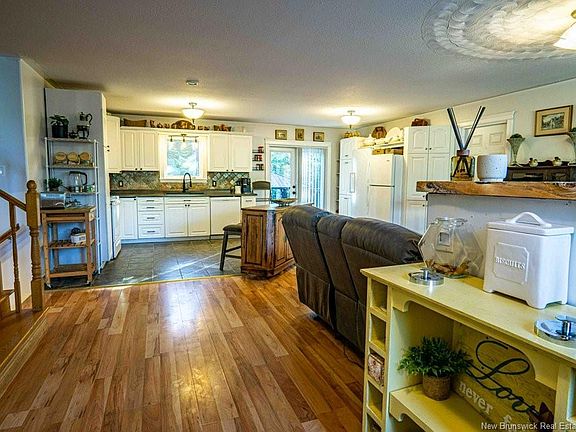 Discover the perfect multigenerational home just 10 minutes from Fredericton, where peaceful country living meets everyday convenience. Set on a beautifully maintained acre+ lot, this property offers space to breathe, room to grow, and a warm sense of home from the moment you arrive. The main home is a classic side split with 2 bedrooms upstairs and 2 downstairs (egress to be checked), giving you flexibility for family, guests, or dedicated work or hobby spaces. The primary bedroom features a double closet and a convenient cheater door to the refreshed full bath. The spacious open kitchen/dining/living area is truly the heart of the home—sunny, spacious, and perfect for gathering. The lower level adds a functional utility/laundry room and access to a generous crawl space ready for all your storage needs.The self-contained granny suite is a standout, offering privacy and independence with its own entrance, open-concept kitchen and living room, full bath, bedroom, and separate laundry. It’s ideal for extended family, aging parents, or anyone who needs their own comfortable space while still being with family. Recent upgrades bring peace of mind: roof on main house, ductless heat pump, annually serviced water treatment system, updated flooring, new whole-home GenerLink, rebuilt front and back decks + side entrance, and a 10x16 wired & insulated baby barn for extra storage. This is a home that’s been loved, cared for, thoughtfully improved and ready for a new family to enjoy!