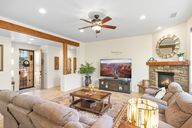 Covered patioCozy stacked-stone fireplaceOpen floorplanBreakfast barEasy-care artificial turfGranite countertopsPatio access