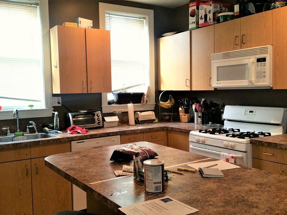 Modern bathLaundry in buildingHardwood floorsGranite counter topsNew appliancesHigh ceiling