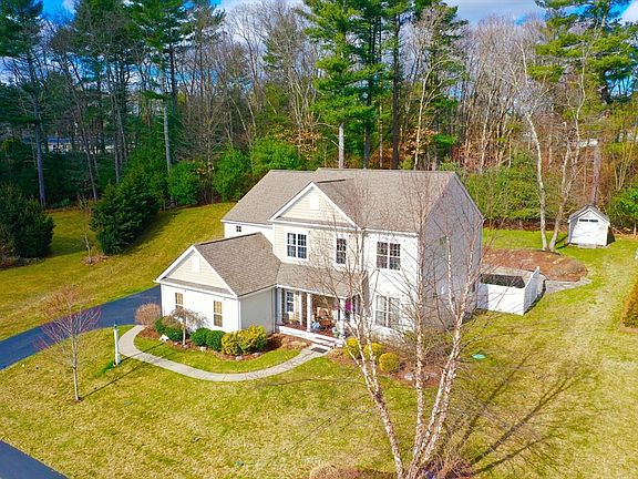 Custom-built Pulte Home located in the desirable Fox Run neighborhood, alongside quiet conservation land & walking trails, yet close to highway access & commuter rail. Designed for the modern family,this spacious Colonial has 4 beds, 2 living rooms, finished basement & 2 bonus flex rooms(home office/guests). A vaulted entrance foyer opens to newly refinished hardwoods that flow into a living room w/gas fireplace, a formal dining area & a gourmet kitchen w/ oversized granite island,ample storage & enough counter space to spread out & create! High ceilings & a wall of windows lets in sun & overlooks a private,prof landscaped yard w/full irrigation,outdoor shower,hot tub,fire pit,electric dog fence & storage shed. An oversized 3-car garage fits trucks/SUVs & connects to a side mudroom.Convenient 2nd floor laundry room w/sink sits between 4 bedrooms & an open lofted family room.The Master Bed features a tray ceiling,a private dressing room & en suite bath w/double vanity & jacuzzi.