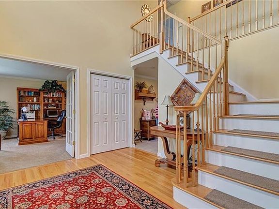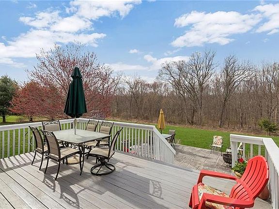 Spacious well kept home. Kitchen has ceramic tile floors, oak cabinets, large pantry and plenty of counter space, EIK & Breakfast Nook area w/slider to extended deck and large backyard. Frml. D.R. with H/W Flrs, warm inviting Entry boast H/W flrs, office/frml L.R. has w/w carpet,laundry room off kitchen has lge closets, Oak stairs lead to 4 bdrms including Master Bdrm with Master Bath & Spa & Turret Windows & Tray Ceilings. M/Bdrm w/huge walk in closet w/2 storage areas on both sides for everything you need to store. 3 good size bedrooms, 2 with dbl closet. Part/fin basement with exercise rm & family room. 3 acres, 2 c garage, cul de sac, near community park for convenience.