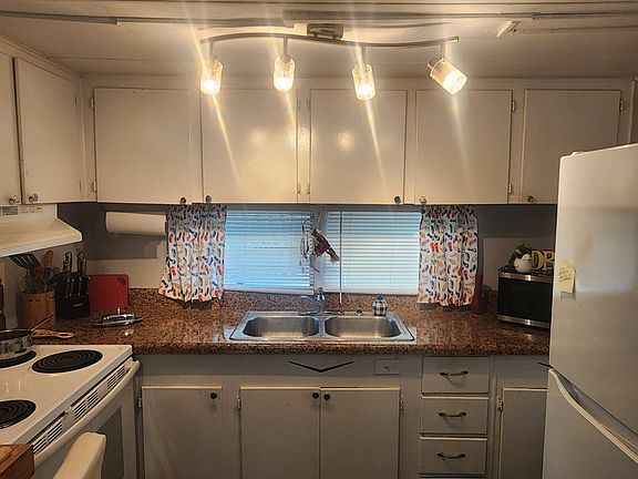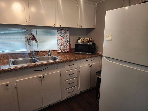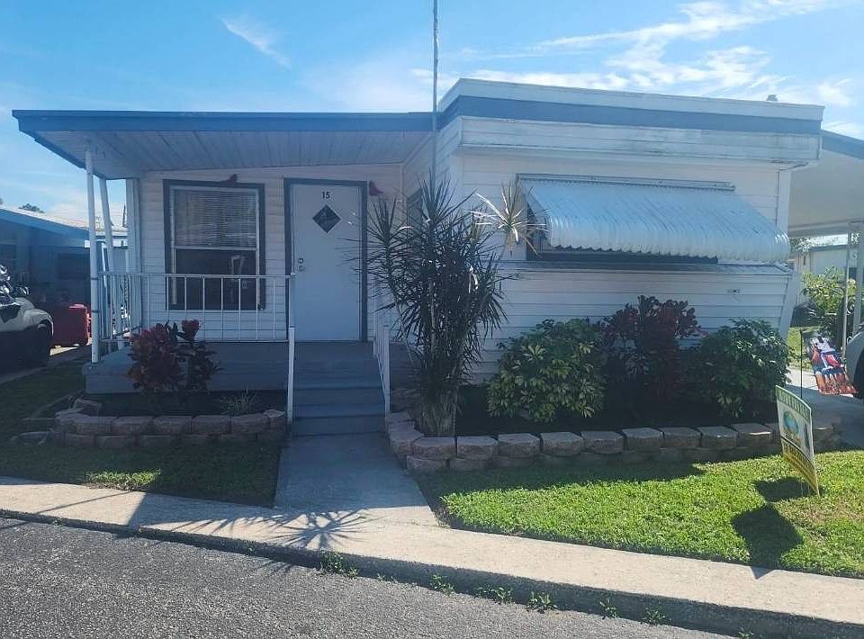 Welcome to this adorable 2 bedroom, 1.5 bath manufactured home in a fabulous 55plus community. CURRENTLY OPENINGS AT 40 and older!! This community also allows larger pets. This property can easily hold 2 vehicles under the covered carport area. Large shed holds the newer washer and dryer. Step inside to beautiful updated flooring throughout. Vaulted ceilings in living area gives this space such a larger feel. Nice dining space and table will stay. Sofa will stay in living area. Kitchen has updated countertops and plenty of cabinets! Also an island space for extra counterspace. This home has cold central AC and a roof over roof. Main bathroom has an updated vanity and a tub/shower combo. Main bedroom currently holds a full bed that will stay and plenty of closetspace!! 2nd bedroom is also spacious and has a half bath. This community has sparkling pool, clubhouse with activities and shuffleboard courts. Walking distance to shopping and restaurants and 12 minutes to the white sandy beaches!! Lot fee is $805 monthly. CONTACT TODAY!!