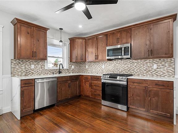 Welcome home to 15 Foster! The home you've been waiting for located in the Darlington side of Pawtucket! This property has been completely renovated from inside out! Young roof, new siding, soffits, downspouts, gutters and trim. Greeted through the front door by a finished enclosed porch for extra space. Offering 4 spacious bedrooms and 2 full bathrooms. Fabulous layout, 1 bathroom on each floor. Gleaming hardwood floors throughout. Bright kitchen with 36 inch tall cabinets, complimenting glass tile backsplash, unique granite counters and stainless steel appliances. Stunning light fixtures and hardware. Clean, dry tall basement that is ready for quick completion with washer/dryer hookup available. Town water and sewer. Gas heating and updated plumbing. Brand new 200 amp electrical service. Convenient sized yard. Detached oversized garage for a vehicle and storage. Doesn't get better than that! Minutes to Massachusetts and close to all amenities including train station and the highway. To top it all off awesome neighbors are ready to welcome you to the neighborhood. Nothing left to do here but move in!