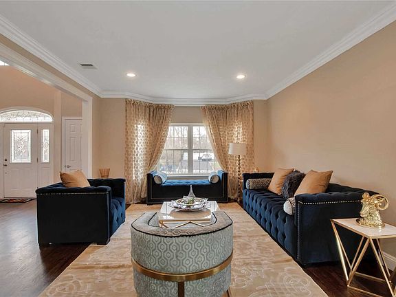 Welcome Home! A stunning post modern custom built house, (4400 sq ft approx). with soaring ceilings, hardwood floors and crown moldings throughout, eat-in-kitchen with stainless steel appliances and granite countertops. Open floor plan, 6 bedrooms, 4.5 baths, den with fireplace, formal dining room, office, full finished basement with 9 ft ceilings. Backyard with patio.Too many features to list!