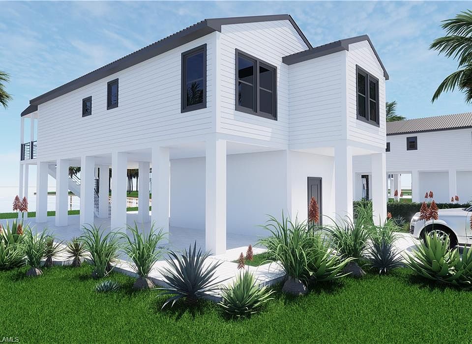 Affordable and Dramatic Miami style design plans available with several flexible buyer options. You will live high and dry in a beautiful hurricane code stilt home. Don't miss the chance to Live the dream on a Private, protected SE facing, deep-water dredged canal. This canal is dredged in perpetuity by Lee Co. Zoning options include stilt build or Modular style home, modular as depicted in renderings. Several available building plan options are available and many custom materials selections. Lot will provide a spacious 2/3 bed/2 bath residence with an upper back deck. Many new owners are building! This secluded location includes: composite boat doc & boat lift that accommodates a 27' boat beside your paver patio. Concrete reinforced bulkhead is in impeccable condition. In 1 MINUTE explore & fish the back waters of the renown ESTERO BAY, PLUS DIRECT GULF ACCESS WITH NO BRIDGES! Port Carlos is in Lee county jurisdiction, no Ft. Myers beach restrictions! Port Carlos Cove is a very unique and rare property that communes with nature. It is defined as: 45 acres surrounded by an environmental preserve with its own canals and over a mile of seawall. This dream location is On a back bay leading out to Gulf waters. Where else for $200! dollars a month can you own a property in such an area with its own boat ramp and dock, clubhouse with Pool, Shuffleboard courts, "back 40" storage area for boat, Utility trailer, RV and extra car storage. Also Port's Compound area: free lawn and landscape service, and trash disposal, water and sewer. lot INCLUDES a large ADDITIONAL protected area for parking and storage+ on this 16-acre site assigned to each resident for your trailer/camper (INCLUDED).. Port Carlos Cove is a 55+active lifestyle, co-op community with limited rentals (30 days-6x per year). Amenities: New Community Pool & newly renovated clubhouse, Pickle Ball, shuffleboard, social club. LOW HOA FEES- $200 PER MONTH include: Water, sewer, irrigation, seawall, landscape, pool maintenance. INCREDIBLE, Quick WALK to Parrot Key Caribbean restaurants, Ft. Myers Beach & Margaritaville, Key West Express terminal, plus a pirate ship! a five min drive offers fun times on Ft Myers Beach! Many builder options available for review.