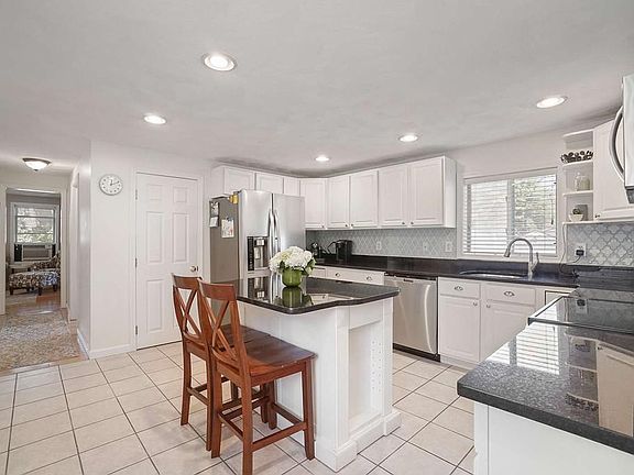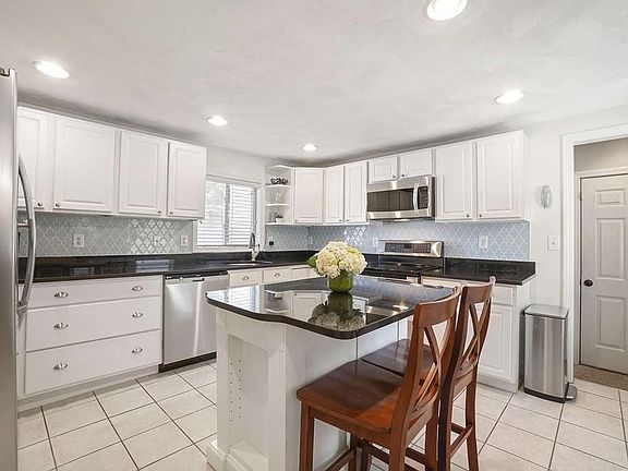 This quintessential Cape has everything you are looking for! The large modern kitchen w/white cabinets, stainless steel appliances, & granite counters is perfect for cooking & entertaining, & leads to a lovely bright dining room w/wainscoting & wood floors. Relax in the cozy living room & enjoy the wood burning fireplace. An oversized 1/2 bath w/laundry, & an awesome play / mud room complete the 1st floor. Upstairs features a huge master bedroom w/recessed lighting, a walk-in closet, & renovated en-suite bath w/a glass shower stall! Two other bedrooms & another full bath complete the 2nd floor. Head downstairs to the finished basement to watch the game in the ultimate man-cave / game room that sports a built in bar! There's also a finished office room / play room in the lower level. The landscaped backyard is fenced in and has a patio, deck, storage shed & a built in bocce court! 2 car garage, new roof, & easy access to 93, 95 & 2 commuter rail stops make this home a can't miss!