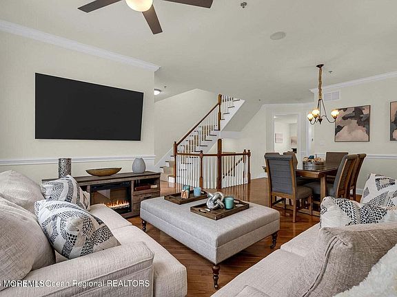 Gorgeous Winter Rental in the Jersey Shore Premier oceanfront community of Beachfront North. 4 Bedrooms/3.5 bathrooms with mounted tvs in all the large bedrooms, cozy den and living room. 2 electric fireplaces with storage, full dining room, KING sized pull out in 4th bedroom/home office. The home office is spacious w private entry to easily move in Peloton, gym equipment/yoga mat. Work from the town home or choose private work spaces in The Ocean Club on site. Ocean Club amenities include a fitness room, community room, library, game room with poker and pool tables. Many fall and winter activities a few blocks to Pier Village. This 3 level townhome boasts parking for 2 cars in the oversized attached garage.