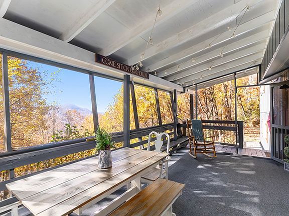 Welcome to your mountain escape nestled in the Western North Carolina Mountains, perfectly located between Sylva and Franklin. This beautifully furnished 4-bedroom, 3-bath home offers the ideal blend of comfort and style. Warm wood accents, a stone fireplace, and vaulted ceilings create a cozy, inviting atmosphere throughout the open living, dining, and kitchen area. A wall of glass doors off the living room opens to the screened-in porch, seamlessly expanding the living space and inviting you to enjoy the fresh mountain air and peaceful views. The primary suite provides an ensuite bath, while the spacious guest rooms ensure comfort for all. The lower level is perfect for entertaining, with a game and TV room plus its own bedroom and bath — ideal for guests or family. Set on a 1.57+/-acre private lot with a 2-car garage, ample storage, new HVAC, and easy year-round access, this home offers the perfect mountain getaway or full-time family retreat.