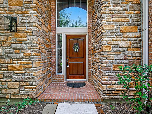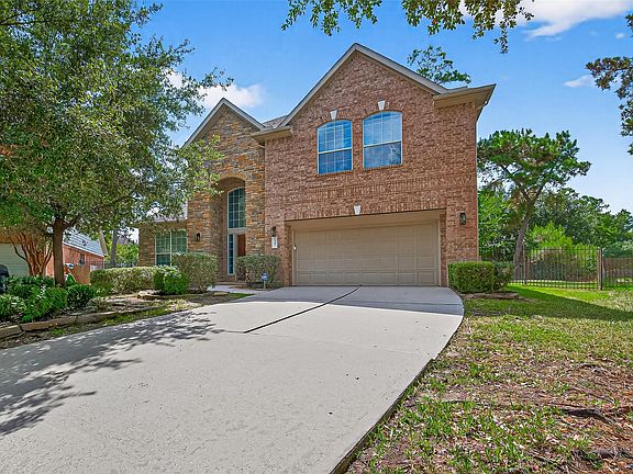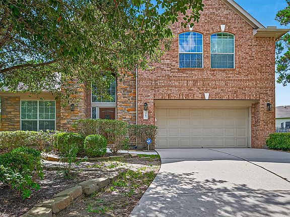 Located in the Creekside Park neighborhood, near community amenities and top-rated schools this 2-story home sits on a large cul-de-sac lot with a landscaped yard and covered front porch. The entry features a stone arch and stained front door. Walls recently painted. Wood and tile flooring extend through the main living areas. The living room has high ceilings, a gas log fireplace, and windows overlooking the covered patio and backyard. The formal dining room and a study with French doors provide additional living space.The island kitchen includes granite countertops, tile backsplash, stainless steel sink, gas range. The breakfast area is adjacent to the kitchen.The downstairs primary suite offers high ceilings, a walk-in closet, dual sinks, jetted tub, separate shower, and private toilet area.Upstairs features a game room, three bedrooms, and a full bath with dual sinks.Additional features include double-paned windows with 2-inch blinds, recessed lighting, crown molding, ceiling fans.