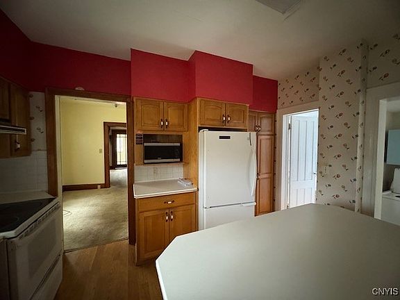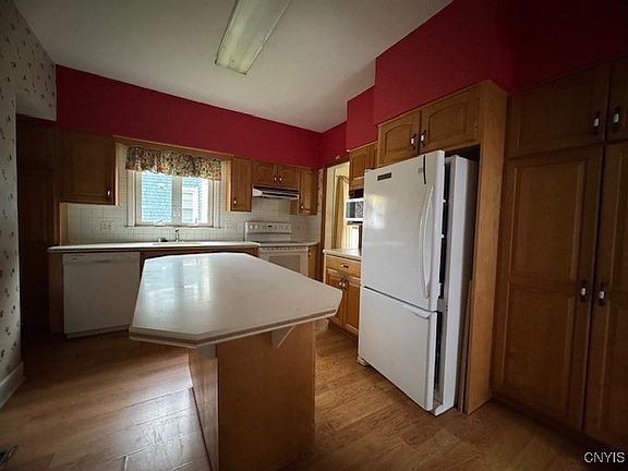 Nestled in the heart of the City of Cortland, this charming two-story home offers a blend of classic character and modern updates. Featuring 3 bedrooms and 1.5 baths, the house includes a generous family room addition at the rear—perfect for gatherings or relaxing evenings at home. The updated kitchen boasts solid surface countertops, a center island ideal for meal prep or casual dining, and ample cabinetry for storage. Original natural woodwork throughout the home adds a touch of timeless elegance, while a convenient first-floor laundry room enhances everyday functionality. Recent upgrades include a newer roof and vinyl replacement windows, providing energy efficiency and peace of mind for years to come. While the home is move-in ready in many ways, it does need some love—new flooring and a fresh coat of paint throughout would truly help bring out its full potential. Whether you're a first-time buyer or looking for a project in a prime location, this home offers a solid foundation and plenty of opportunity to make it your own.