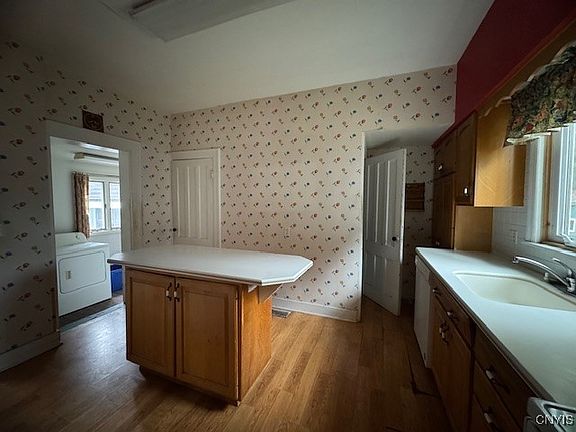 Newer roofVinyl replacement windowsCenter islandFirst-floor laundry roomOriginal natural woodworkAmple cabinetryUpdated kitchen