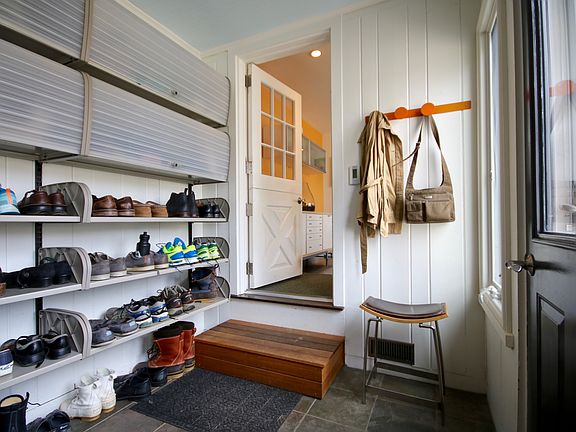 Mid Century Modern home with views of Casco Bay View from front yard.