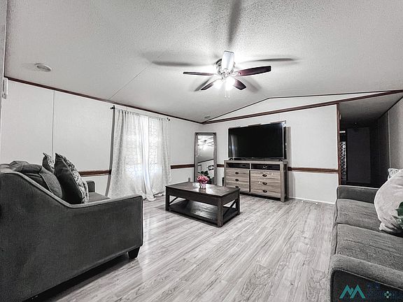 Rural Haven: Embrace the tranquility of a 1280 sqft (80x16) single wide home nestled on 2.5 acres in Dexter, just outside of Roswell. A thoughtfully designed layout, adorned with a split floor plan, gives a cozy yet spacious feel. Recent upgrades include new flooring in high-traffic zones and guest bedrooms. Entertaining is a breeze with a wet bar and breakfast bar in the common area. The well-proportioned guest rooms share the full hall bathroom. The primary suite boasts an ensuite with a freestanding tub, a separate shower & well sized vanity. The property boasts multiple outbuildings, a 2-car detached carport, and a convenient dog run. Property also has front yard sprinklers with pecan & pistachio trees. Financing available with 20% down through JP stone. Per seller new roof & septic ~4 years ago.