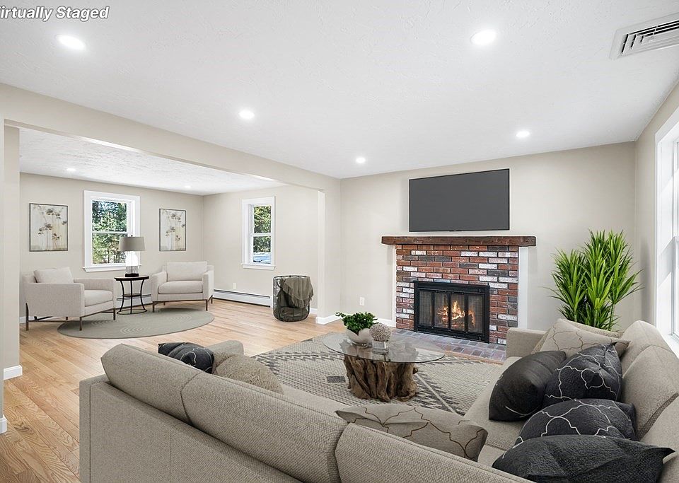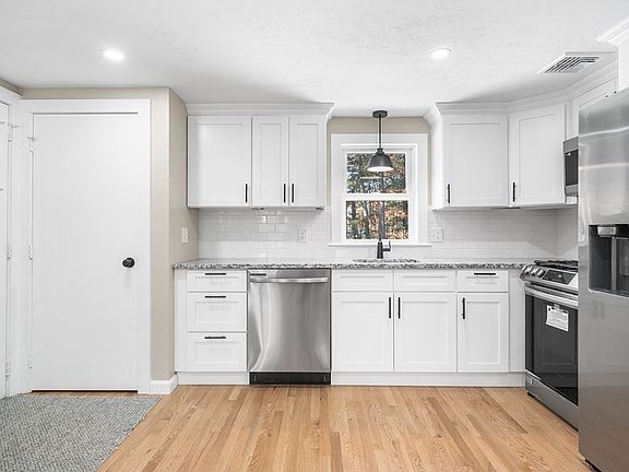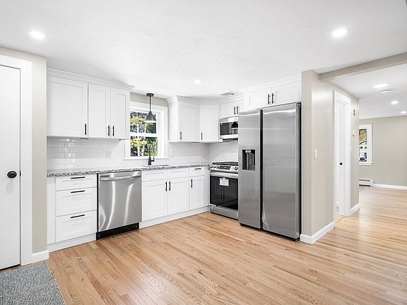 Your Dream Home Awaits! Turn Key Beautifully Renovated 3 Bedroom Cape with Over-Sized Breezeway and Spacious 2 Car Garage! New Kitchen with Granite Counters, Soft Close White Cabinets, Stainless Appliances, and Backsplash Open to a Large Dining Area. New First Floor Bathroom! Front to Back Family Room with Fireplace! New Hardwood Floors Throughout the First Floor and Upstairs Hallway! New Recessed Lighting Throughout! 2nd floor offers a Primary Bedroom and 2 Additional Bedrooms with New Carpeting and A New Full bathroom! The Finished lower level offers 4 Carpeted rooms with recessed lighting. Use as Home office, Gym, playroom, mancave! New Paint! New Vinyl Siding! New Harvey Windows! New Baseboard Heating and New Central A/C! New Septic installed in 2023! Great West Plymouth Neighborhood close to everything Plymouth has to offer!
