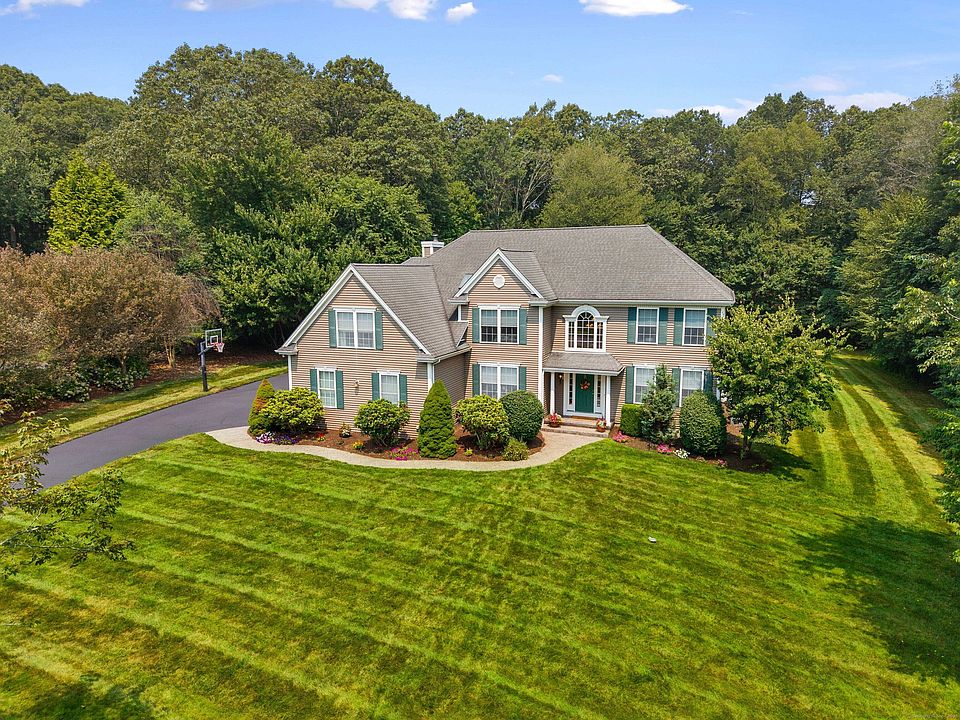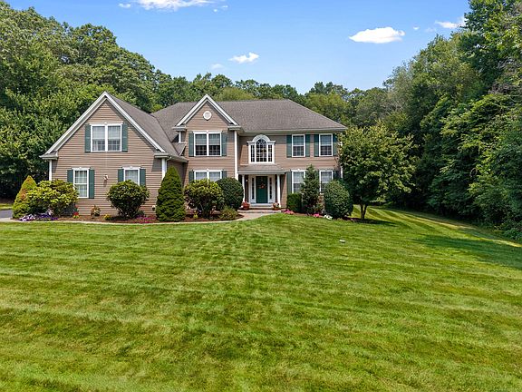 Welcome to 15 Harvest Glen, a stunning residence in one of East Lyme's most desirable neighborhoods. This beautifully appointed home features a dramatic great room with soaring ceilings and floor-to-ceiling windows, filling the space with natural light. The granite eat-in kitchen offers custom cabinetry, a center island, and flows seamlessly into the formal dining and living rooms, creating the perfect setting for both everyday living and entertaining. A private office provides an ideal work-from-home retreat. Upstairs, you'll find four spacious bedrooms including a luxurious primary suite with over $80,000 in upgrades, designed for comfort and style. The finished lower level extends the living space with a gym and family room. A three-car garage adds convenience and storage. Step outside to the private backyard retreat, where over $50,000 in stamped concrete patios set the stage for gatherings, relaxation, and outdoor enjoyment. Central air ensures year-round comfort, while thoughtful upgrades throughout the home highlight both quality and elegance. With its blend of architectural detail, modern amenities, and a backyard you'll love, this home offers the best of shoreline living. House is 3502 sqft of living space above grade. Finished basement adds another 845 sqft below grade.
