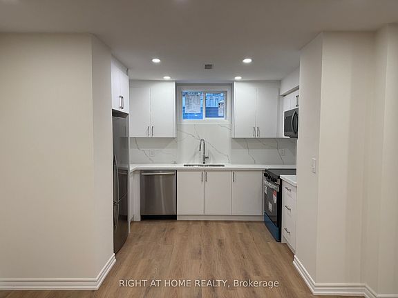 Welcome to your beautifully updated home in the heart of Thornlea; One of Markham's most sought-after neighborhoods. This completely renovated ~800 sq ft. 2-bedroom basement unit blends contemporary style with functional living, offering a bright, comfortable, and private retreat for discerning tenants. Enjoy the convenience of your own private separate entrance, providing both independence and a seamless transition into your space. The unit boasts a functional open-concept layout, ideal for relaxing, entertaining, or working from home. Brand-new vinyl flooring throughout, New lighting fixtures, Stylish new kitchen cabinets and countertops, perfectly complementing the stainless steel appliances and a Contemporary bathroom with a glass-enclosed shower. Additional Highlights include 2 spacious bedrooms with ample closet space, 1 convenient front yard parking space included, Just steps away from public transit, scenic parks, and walking trails, Easy access to Highway 407 and the DVP, making commuting a breeze. Tenant is responsible for 1/3 of the utility bills. This move-in-ready unit is perfect for professionals looking for a modern, comfortable, and well-located home. Don't miss out on this rare rental opportunity in an established, quiet, and family-friendly neighborhood.