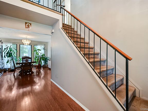 New to the Market! Located in a lovely neighborhood perfect for the whole family. This Colonial-style home is set on nearly three-quarters of an acre in a highly desirable community. Upon entering there is a 17' high foyer. The main level offers a formal living room and a formal dining room with floor-to-ceiling windows, filling the space with natural light. The open kitchen with center island offers plenty of cabinetry as well as counter space and a double pantry. This room flows seamlessly into the family room which offers a twin vaulted ceiling and sliders to the deck creating the perfect setting for everyday living and entertaining. Step outside to an oversized 16’ x 24’ rear deck which overlooks a private wooded backdrop—an ideal space for gatherings or quiet relaxation.