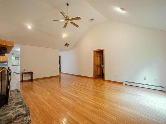 (Updated 7/22/2025) BACK ON THE MARKET! SINGLE FLOOR LIVING AT ITS BEST! Showing by Appt ONLY! Discover this custom contemporary ranch at the end of a quiet cul-de-sac, perfectly nestled on 2.06 private acres in one of Pelham’s most desirable neighborhoods. This move-in ready 4-bedroom, 3-bath home features true single-level living with an ambulatory-friendly layout, including a handicap lift from the garage to the main living space. Enjoy gleaming hardwood floors, a cozy fireplace, and spacious, sun-filled rooms. The huge walk-out basement offers endless potential for expansion or storage. Benefit from solar panels, a peaceful wooded setting, and excellent proximity to town amenities. Property has been well cared for, but shows sign of minor cosmetic ware. Solar panels are on the backside and are leased with Sunrun. Documentation to be provided upon request. Buyers and buyer agents to do their own due diligence.