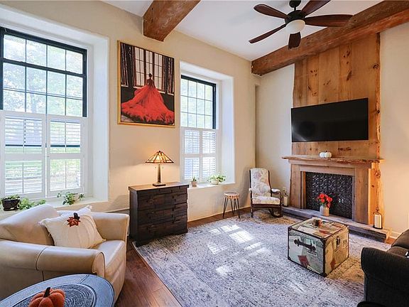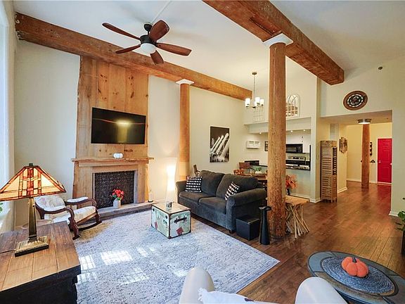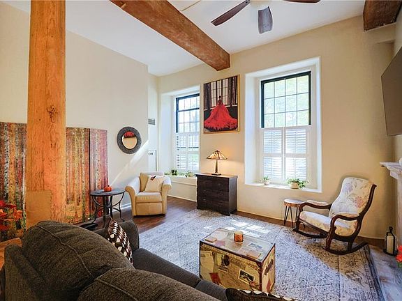 Welcome to Homestead Mills, one of the area's most sought-after communities, where historic charm meets modern comfort. This sun-drenched condo boasts soaring 14-foot ceilings, faux fireplace, oversized windows, and stunning timber exposed beams that fill the space with warmth and character. Updated kitchen with dining area opens to the spacious living room. The huge bedroom also features a walk-in closet with a beautiful barn door and ceiling fan. A thoughtfully designed office area makes working from home both stylish and functional. There is in-unit laundry for your convenience along with an on-site gym, secured storage unit and lovely common space with a welcoming book exchange. New roof and insulation completed 2024. Easy commuting location along with great access to restaurants and cafes. Don't miss this amazing opportunity.