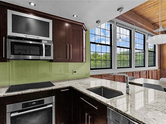 Stunning 2 bed, 2 bath condo for sale in desirable Homestead Mill! You will enjoy high end materials and workmanship in this delightful top floor, corner unit. The grand windows allow for an abundance of natural light to flow throughout the open floorplan. Custom kitchen with solid cherry cabinets, high end appliances, beautiful hardwoods, brick walls, soaring wood ceilings, HVAC system just over 2 years old, updated baths with custom tile and design, and plenty of closets and storage. The kitchen flows into open dining and living area, leading to bedrooms and 2 beautiful, full baths. Laundry room in unit for added convenience. 2 reserved parking spaces included with on-site recreation and gym. Just a short walk to Georgiaville Pond where you can swim, kayak, canoe, or picnic. Great location. Close to highway, Smithfield Crossing and other conveniences. Come and see all this amazing condo has to offer!