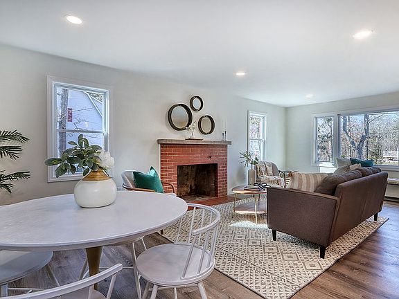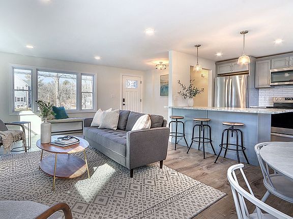 No open house scheduled. Call or text for a private showing. Dreaming of a new home...this gorgeous "like new" home boasts a kitchen/living area that has been transformed into a space you'll love to come home to. Walls were opened to create a living space for today's lifestyles. You'll love the sprawling island with fantasy brown leathered granite that separates the kitchen from the living room. Stainless appliances, white tile backsplash, stainless hardware/sink/faucet, built-in barrels and lots of storage. They say everyone is drawn to the heart of the home, the kitchen! With this layout and a center fireplace in the living rm you'll have the perfect space for entertaining. Trendy bath with navy vanity, tile floors and chrome finishes. 2 spacious bedrooms with double closets. 3 hallway closets make storage needs easy! Downstairs you'll find a blank slate for creating a 2nd living space, possible in-law with private entrance. All new systems (gas furnace, central air, plumbing, electrical, hot water, roof, siding, composite decking, exterior doors, interior doors). Modern finishes throughout. Recessed lighting. So much to love with corner lot and close to Rt. 3A and 495 for commuters. Seller is a license broker. Seller will be paying for landscaping and a new driveway. Work to be performed in spring.