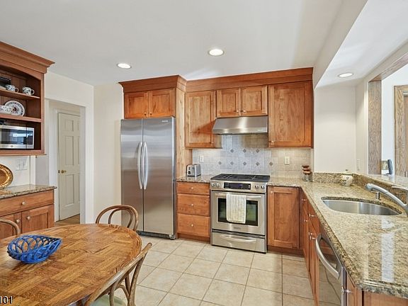 Meticulously maintained and updated ranch nestled on a quiet cul-de-sac located in one of Livingstons most desirable areas, close to schools, houses of worship, NY transportation and shopping. This warm and inviting home combines classic charm with modern convenience, offering a perfect blend of comfort and style. Featuring renovated kitchen with custom cabinetry, gleaming granite counters, stainless steel appliances, all opening seamlessly to a spacious family room addition with cathedral ceiling, built-in entertainment center, gas fireplace and sliders to large deck. The main level features hardwood flooring beneath the wall-to-wall carpeting, ( except family room) recessed lighting. The lower level features a finished expanded walk-out basement level with a rec-room, office , half bath, laundry area, generous storage area and walk-out access to yard. This home has a 2020 Hvac system and a 2022 Hot water heater. Located in area of homes being expanded and renovated. Fireplace , chimney, flu and roof in AS IS condition with no known issues,
