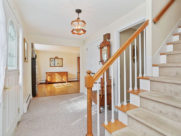 This well-maintained 4-bedroom, 3-full bath colonial offers over 2,800 square feet of living space on a beautiful one-acre lot in Trumbull's Tashua section, located within the desirable Jane Ryan Elementary School district. Owned by the same family for decades, the home sits proudly above the road with strong curb appeal-grand front columns, a distinctive garage cupola, and a front yard that levels off into a spacious backyard perfect for gatherings or relaxing on the expansive patio. Features include low-maintenance vinyl siding, a newer roof (12 years) with warranty, natural gas, city sewer, and a top of the line Buderus boiler. The kitchen offers ample cabinet and counter space, stainless steel appliances, a gas range with commercial-grade hood, and a walk-in pantry with extra prep space. The main level includes a full bath, washed/dryer and garage access just steps from the kitchen- designed for convenience! The family room boasts vaulted ceilings and a fireplace with gas insert as a warm focal point. Upstairs are four generously sized bedrooms, including a primary suite with private full bath and walk-in closet. The finished lower level adds approx. 540 square feet of flexible living space with interior and exterior access-ideal for guests or potential in-law setup. Located near the town golf course, tennis courts, and park, this home blends practical updates, comfort, and a versatile layout in a desirable Trumbull setting. Welcome Home!