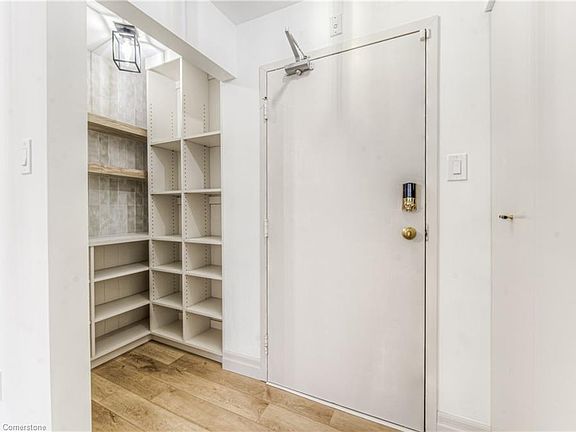 STUNNING UNIT WITH 2 PARKING SPACES (1 LEASED). Completely redone and move-in ready! This stunning 2-bedroom, 2-bathroom condo in Kitchener offers modern living at its finest. Ideally located near Fairview Park Mall, Chicopee Tube Park, and with easy access to the highway, convenience meets style in this fully upgraded unit. Step into a bright, brand-new white kitchen featuring black hardware, stainless steel appliances, and a custom built-in pantry with shelving. Both bathrooms have been beautifully renovated, with the main bathroom showcasing elegant tile work, a modern vanity with under-storage, and sleek black finishes. The luxurious primary bedroom includes a custom-designed closet system with drawers and shelving, leading into a stylish 2-piece ensuite. Enjoy cozy evenings by the wood-burning fireplace in the spacious living room, or relax on your private balcony. Freshly painted throughout, the unit also boasts high-end luxury vinyl flooring and updated trim. A truly turnkey home with every detail thoughtfully designed—don’t miss your chance to make it yours! Property has been virtually staged.