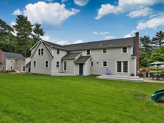 Classic New England Cape in walking distance to the Center of Town. This home was renovated in 2010 and features 10 rooms including 3 large Bedrooms and 2.5 Baths. Foyer opens to a front to back Living Room with fireplace and built in bookcases with French doors to deck and patio. Custom Kitchen / Dining Room combination with granite breakfast bar, stainless and black appliances, pantry and plenty of cabinets and two built in desks. Spacious and sunny Family Room off the Kitchen. Play Room, Office and Laundry on the second floor. Mud Room with storage area off the Garage. AC, Central Vac, Sprinklers, hardwood floors and an unfinished Basement with plenty of great storage space. Beautiful landscaped level lot. Move right in !!!