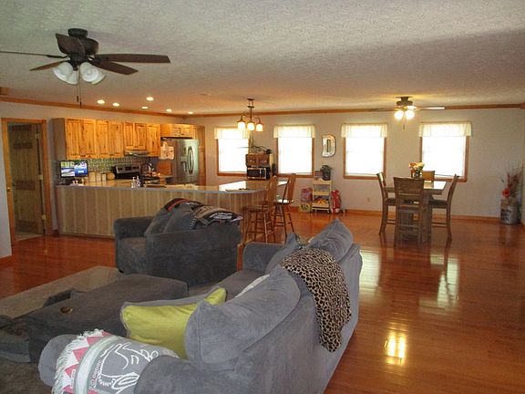 This beautiful home, built in 2005, sets on almost 8 acres with stunning views all around. The home with 4128 sq ft {per pva} has 3 or 4 bedrooms, 3 full bathrooms, large kitchen, dining room, great room, open floor plan, finished basement with poured walls, storm safe room, geo thermal heat and cooling, above ground pool, and much more. 14' by 24' garage storage building.