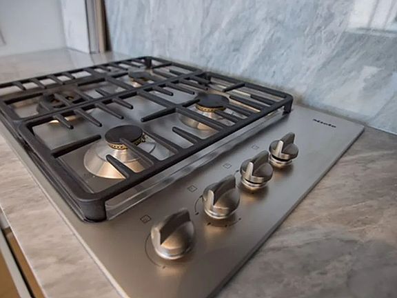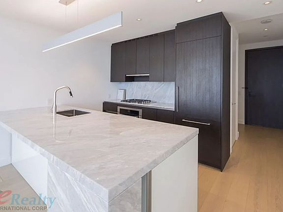This sun-drenched 1BR home of enormous 1044sf with 10’10” ceiling heigh features western exposure, floor-to-ceiling windows and spectacular sunset views of the Hudson River flowing below melodiously, the entry foyer, living room and an open kitchen with a polished Italian Grigio Trambiserra marble island and countertops, with custom oak cabinetry and a full Miele appliance package including a wine storage. The bright and airy master bedroom suite features a large walk-in closet. The sleek bathroom features fine fixtures with modern design finishes: a deep soaking tub, a rain shower, floating stone vanity with double sink and walls clad in a polished Blue De Savoie stone, and radiant heat floors and an in-unit washer & dryer. Standing in front of the windows, when looking left, you see the Statue of Liberty; and right, you see the coastline, boats and bridges. Turn around, the in-season fruits on the marbled kitchen island put a relaxed smile on your face. You are enjoying the gorgeous kitchen area so conducive to gastronomical creativity. The built-in large fridge, the marble countertop book-matched with the backsplash guarantee the satisfaction of luxury only for the right honorable gentleman or lady. You wander into the bedroom area, catch sight of the walk-in closet instantly envisioning it filled with personal collections. Just a few steps into the large floor-heated bathroom, the amazing rainshower set-up and the floating vanity design ensure the luxurious conformity with the King-sized bed in the middle of the bedroom area, leaving ample space for a dresser on the side.