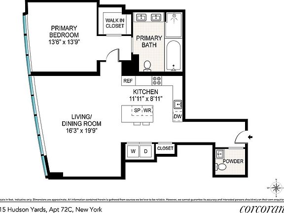 Panorama Residence 72C is an expansive one-bedroom home encompassing 1,059 square feet, designed with both elegance and functionality in mind. With soaring ceilings up to 10'10" and floor-to-ceiling windows, the residence is flooded with natural light and frames dramatic sunset views over the Hudson River.