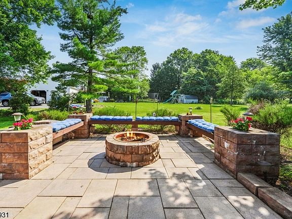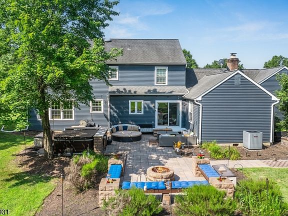 Step inside this beautifully updated home and enjoy a flexible floor plan designed to fit your lifestyle. A first-floor bedroom/office with adjacent full bath offers versatility, while sun-filled living and dining rooms are enhanced by hardwood and wood laminate flooring, recessed lighting & modern fixtures. The inviting family room boasts a soaring beamed ceiling and wood-burning fireplace, seamlessly connecting to the sparkling white kitchen with granite counters, floating island, under-cabinet lighting, gas range, microwave & new dishwasher. A half bath and convenient laundry room complete the main level. Upstairs, discover four spacious bedrooms including the primary suite with walk-in closet and en suite bath showcasing a vaulted skylit ceiling, separate vanity, and stall shower. The renovated hall bath features a quartz countertop and tub/shower. A finished basement offers abundant updates with space for fitness, recreation or hobbies. Outdoor living is equally impressive with an expansive paver patio featuring a bubbling hot tub, stylish dry bar, natural gas BBQ hookup, fire pit and built-in bench seating--perfect for year-round entertaining. Additional highlights include dual-zone AC/heat, a portable generator & all major appliances. A basketball hoop in the driveway adds fun, while nearby nature trails, parks, shopping, NYC transit, and highly rated Hillsborough Schools make this move-in ready gem an exceptional value you won't want to miss!