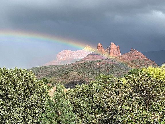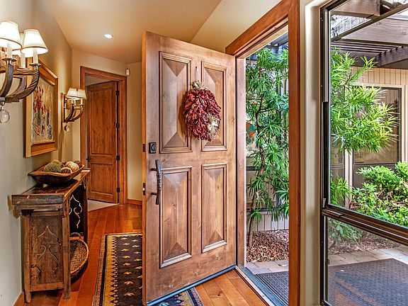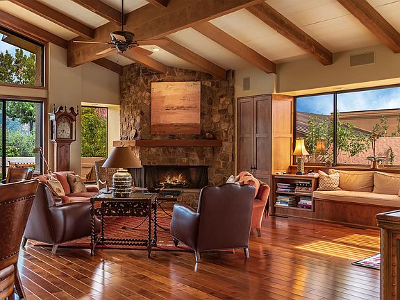 Perched on a hilltop in Uptown Sedona, just a stroll down the hill to restaurants and shopping, tucked away in a small cul du sac called Hy View is this Don Woods completely remodeled home that feels remote while being truly centrally located. From this treasure of a home you have 360 degree views taking in a good portion of Sedona's most iconic Red Rock Vistas! As you walk up to the front door you can see a lit gallery hallway with artwork that accents the natural beauty of the foliage. Once inside you are drawn into a warm, open Great Room with Maple floors, Leathered Granite Counter Tops in the Gourmet Kitchen, a fire in the Fireplace that is surrounded by beautiful red rock views through large floor to ceiling windows. All the custom wood work in the home is made of Knotty Alder.
